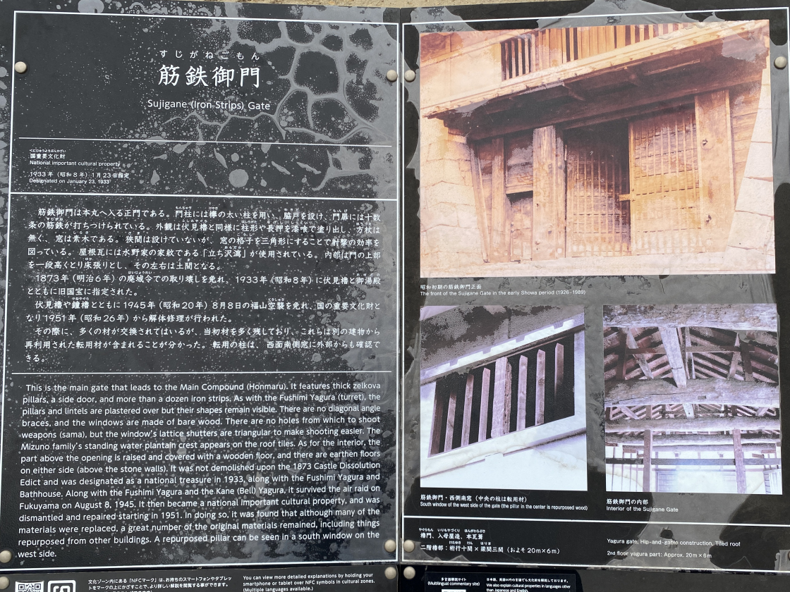 | ●伏見櫓の向かいにある筋鉄御門(現存、重文)。 解説板 |