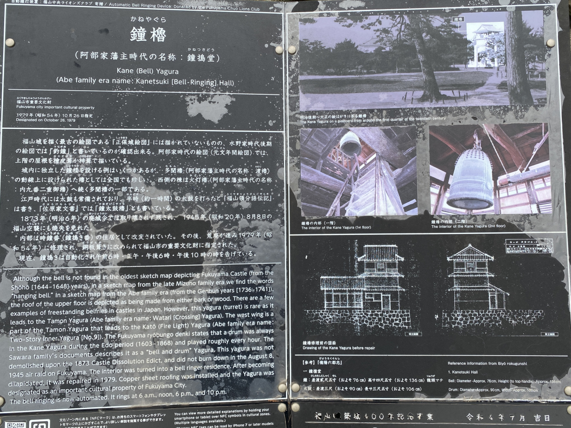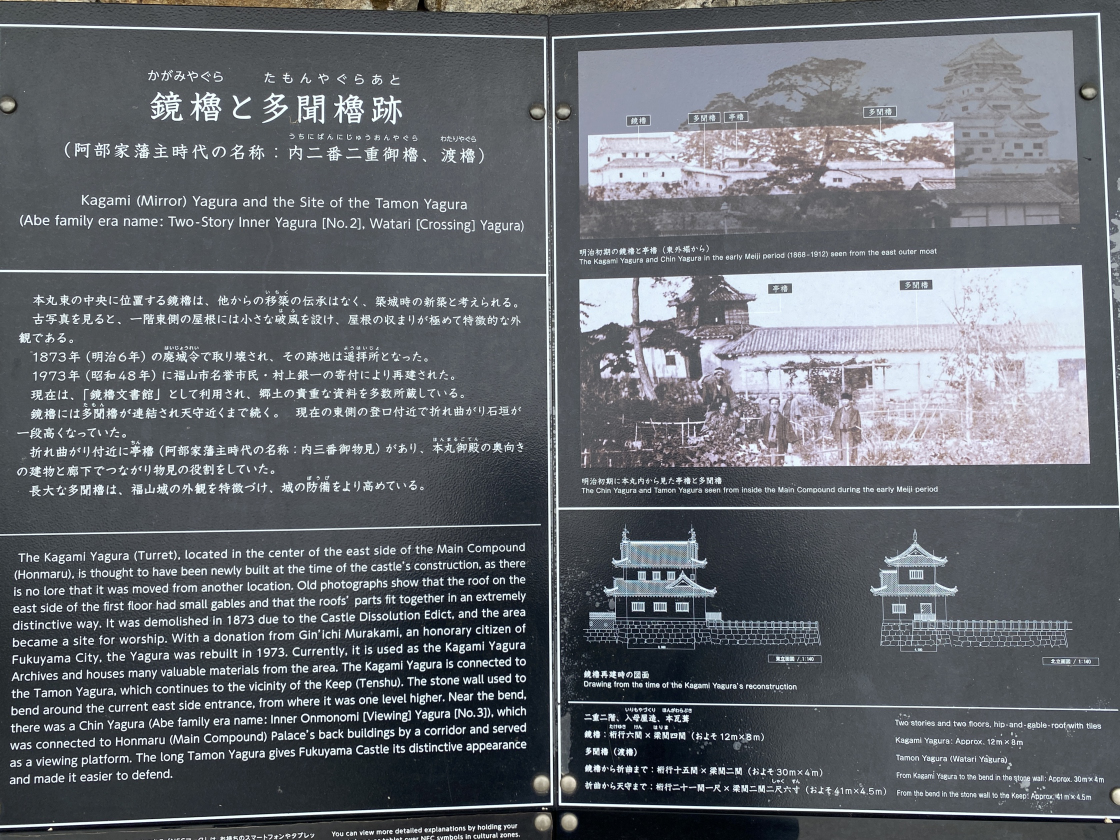 | ●月見櫓の北側にある鏡櫓(昭和に模擬再建)。 解説板 |