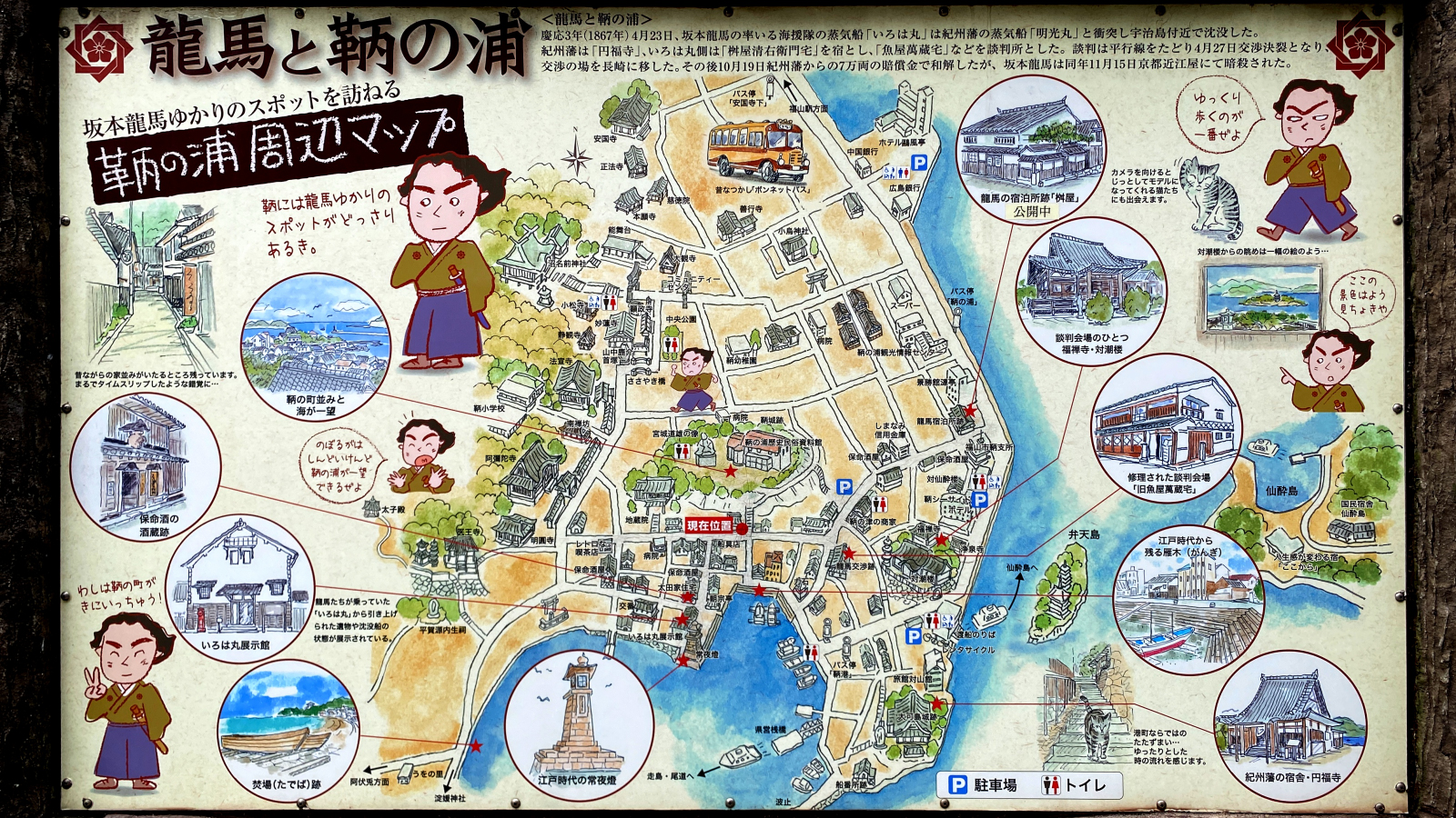 | ●鞆の浦の中心地にある鞆港の眺め。奈良時代の頃から潮待ちの港として栄えた。 鞆の浦周辺マップ |