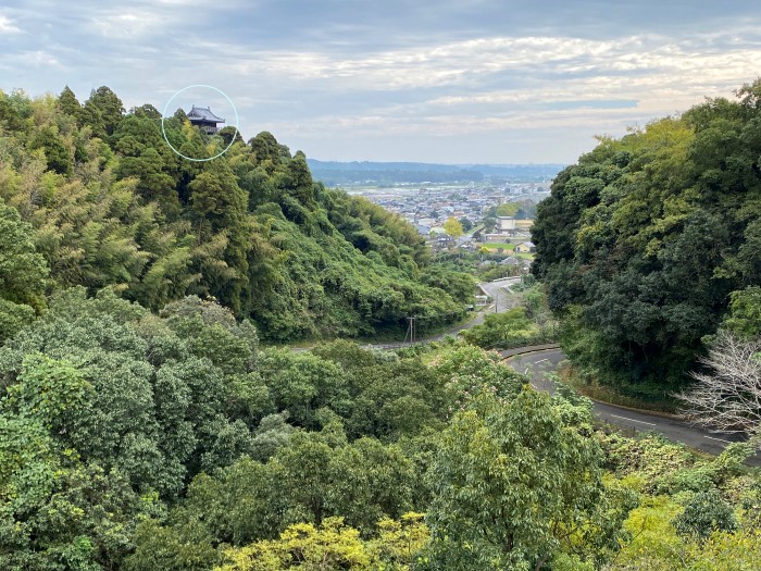 | ●台地の先端部に築かれた綾城天守閣。伊東四十八城の一つ。 撮影地 |
