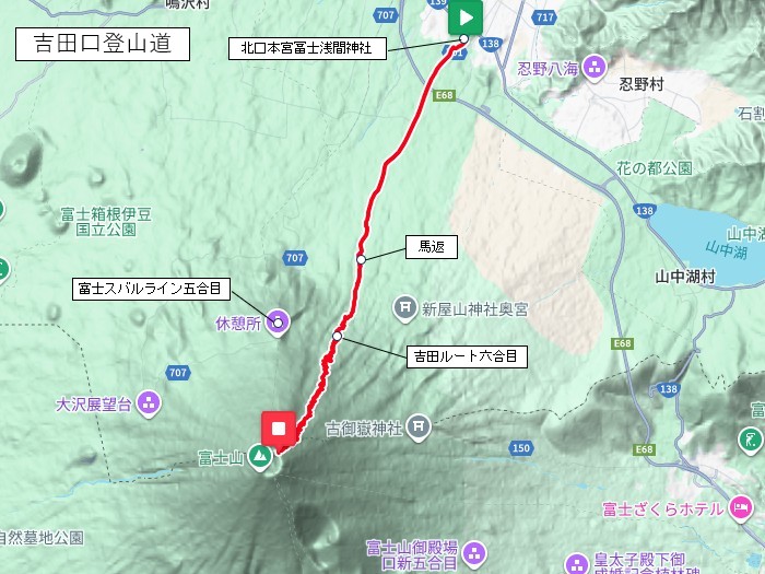 富士吉田市上吉田/北口本宮冨士浅間神社 地図 Trail-20221011、20250914 |