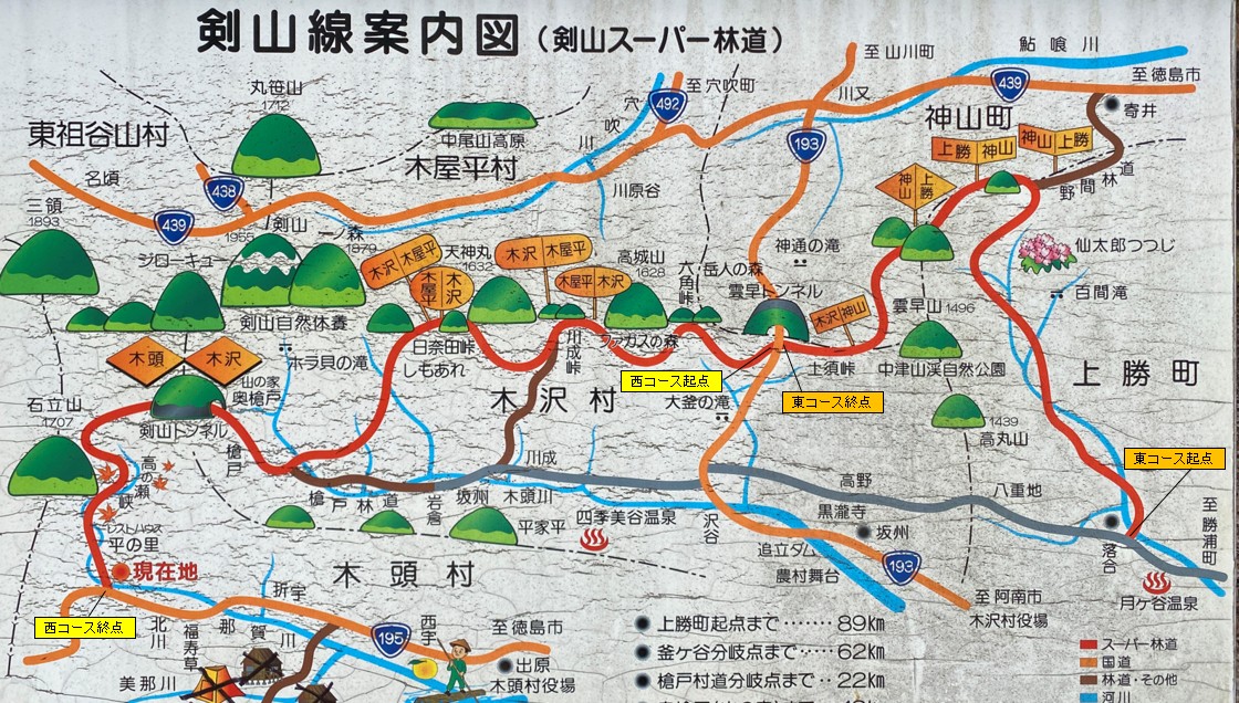 | 2)国道195号、193号を北上して徳島県那賀郡那賀町へ。剣山スーパー林道西コース起点に到着。 撮影地 |